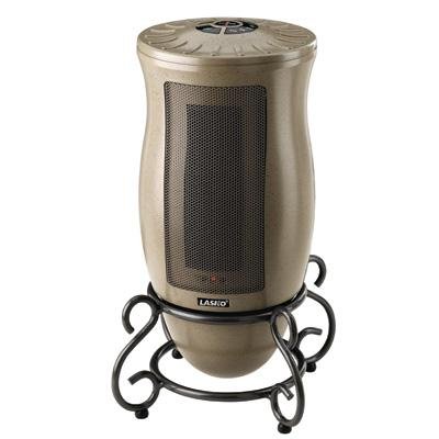 Lasko Designer Series Oscillating Ceramic Heater... With style to spare, the Designer Series Oscillating Ceramic Heater provides warmth and charm to any room. Displaying a beautiful metal scrollwork base, unique hourglass shape, and neutral color, it blends well with any d cor. Not only elegant, its electronic touch-control operation allows you to fine tune the room temperature to your comfort level. Features include two quiet comfort settings, an adjustable thermostat, and an energy-saving seven-hour timer. The oscillation function allows you to expand your comfort zone over a broad area. Two comfort settings include high at 1500 watts/5118 BTU and low at 900 watts/3070 BTU Energy Usage 1.5 Kilowatts per hour/1500 watt setting and 0.9 Kilowatts per hour/900 watt setting Electronic touch-control operation Oscillation for Full-Room Coverage Adjustable thermostat Seven-hour timer Built-In Ceramic Safety Automatic Overheat Protection.